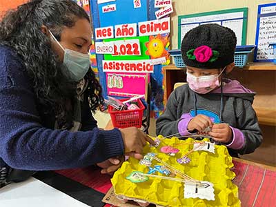 Aleyda de las Mercedes Machan Sosa es una docente empática que encarna una actitud de positividad, expresando a través de su rostro, tono de voz y lenguaje corporal una ternura que invita a los niños a sentir confianza, configurando el ambiente ideal para el aprendizaje.